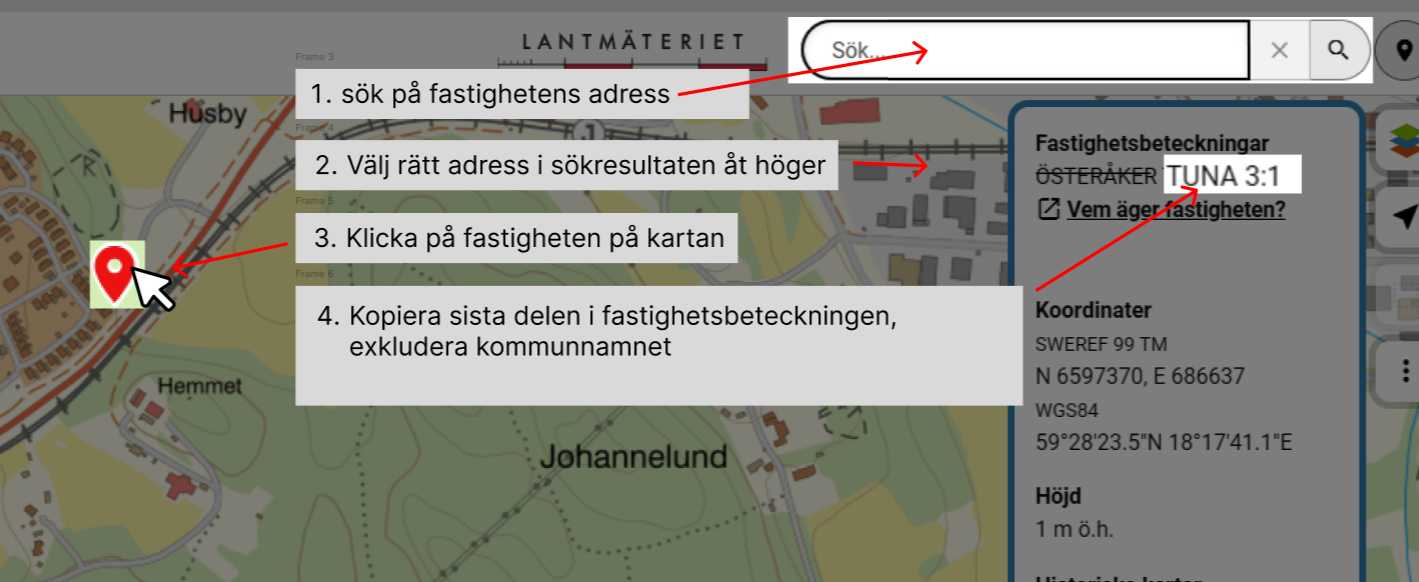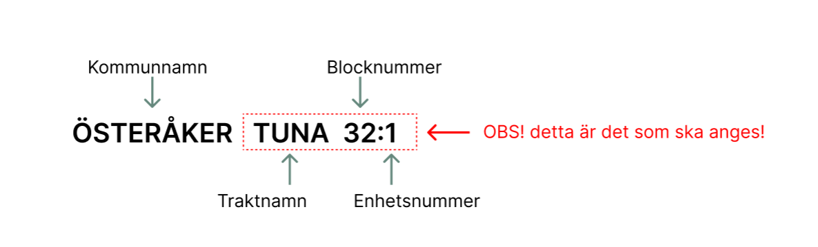 För att hitta fastighetsbeteckningen kan du använda Lantmäteriets söktjänst